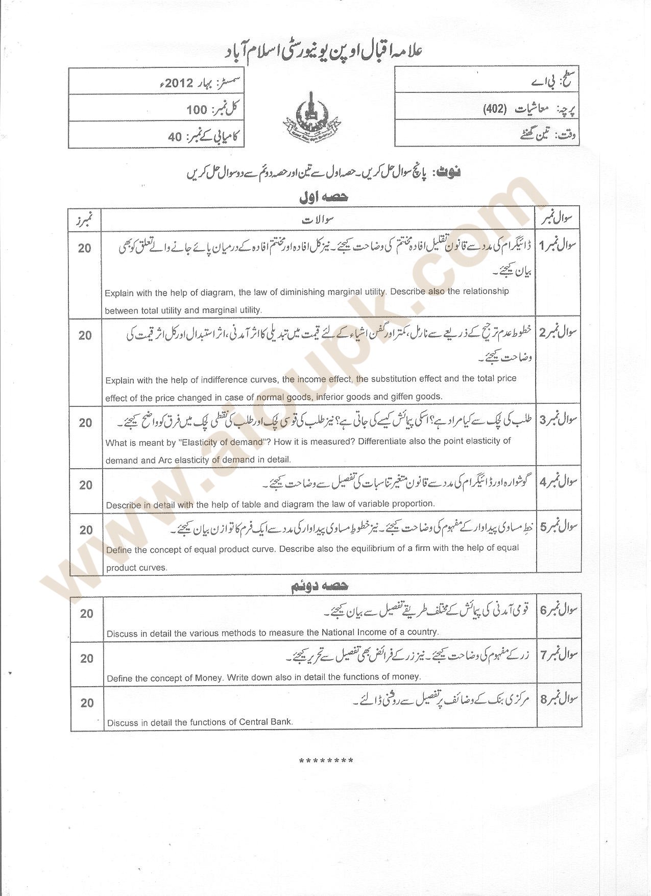 Past Papers are very helpful to prepare examinations of University. Get idea of Paper pastern from these past papers. We will updated more papers soon.