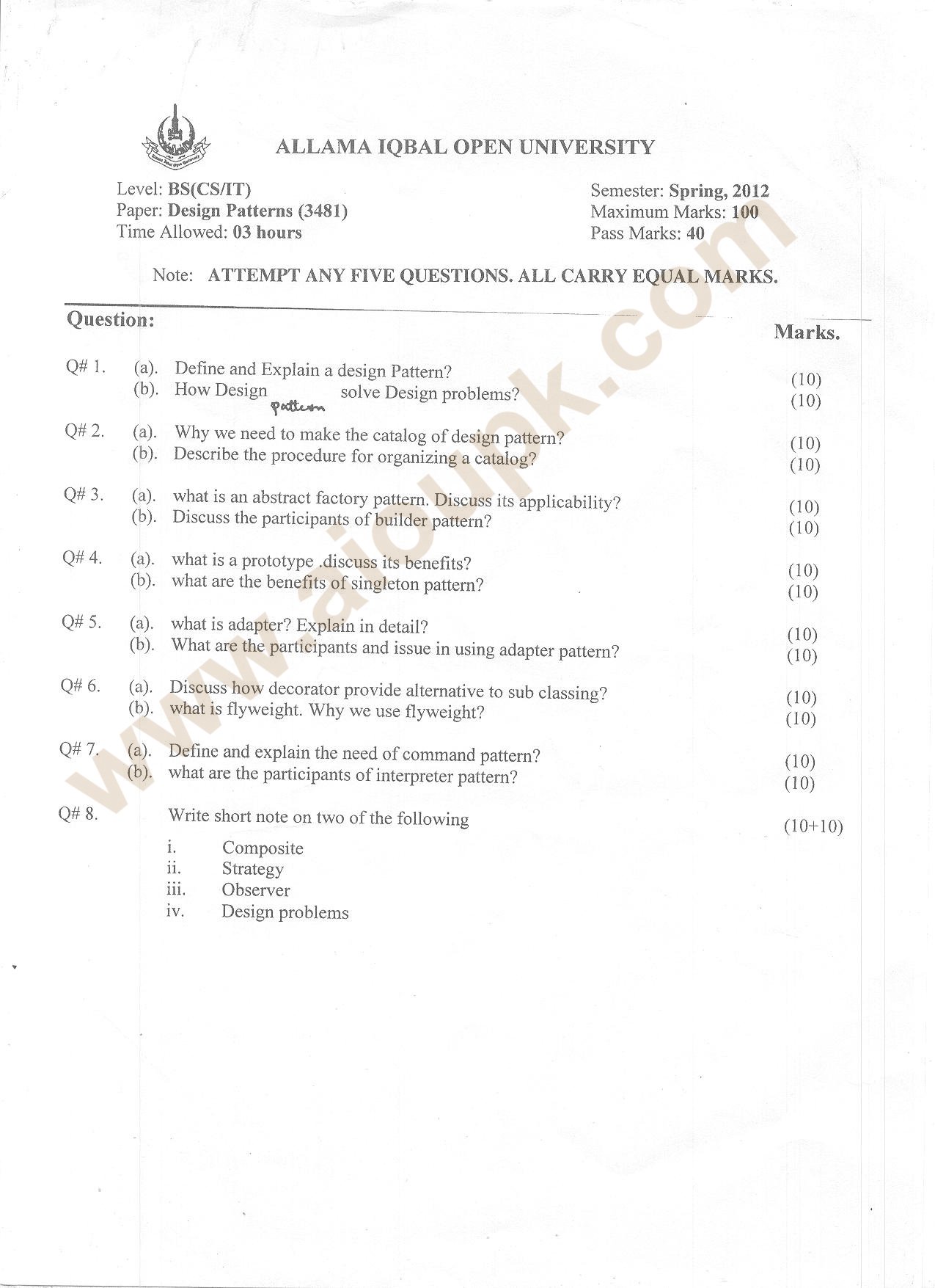 Allama Iqbal Open University Past Papers