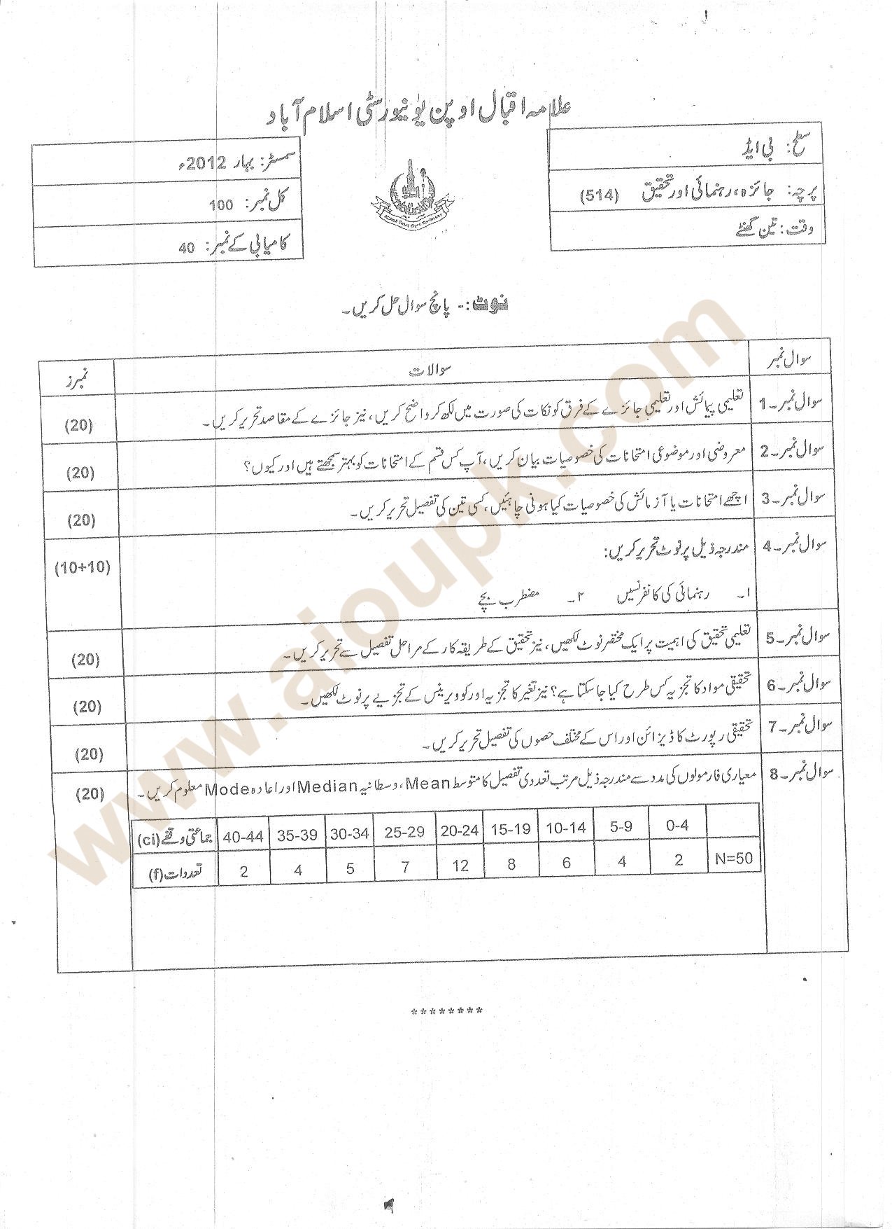 Allama Iqbal Open University, Islamabad Past Papers