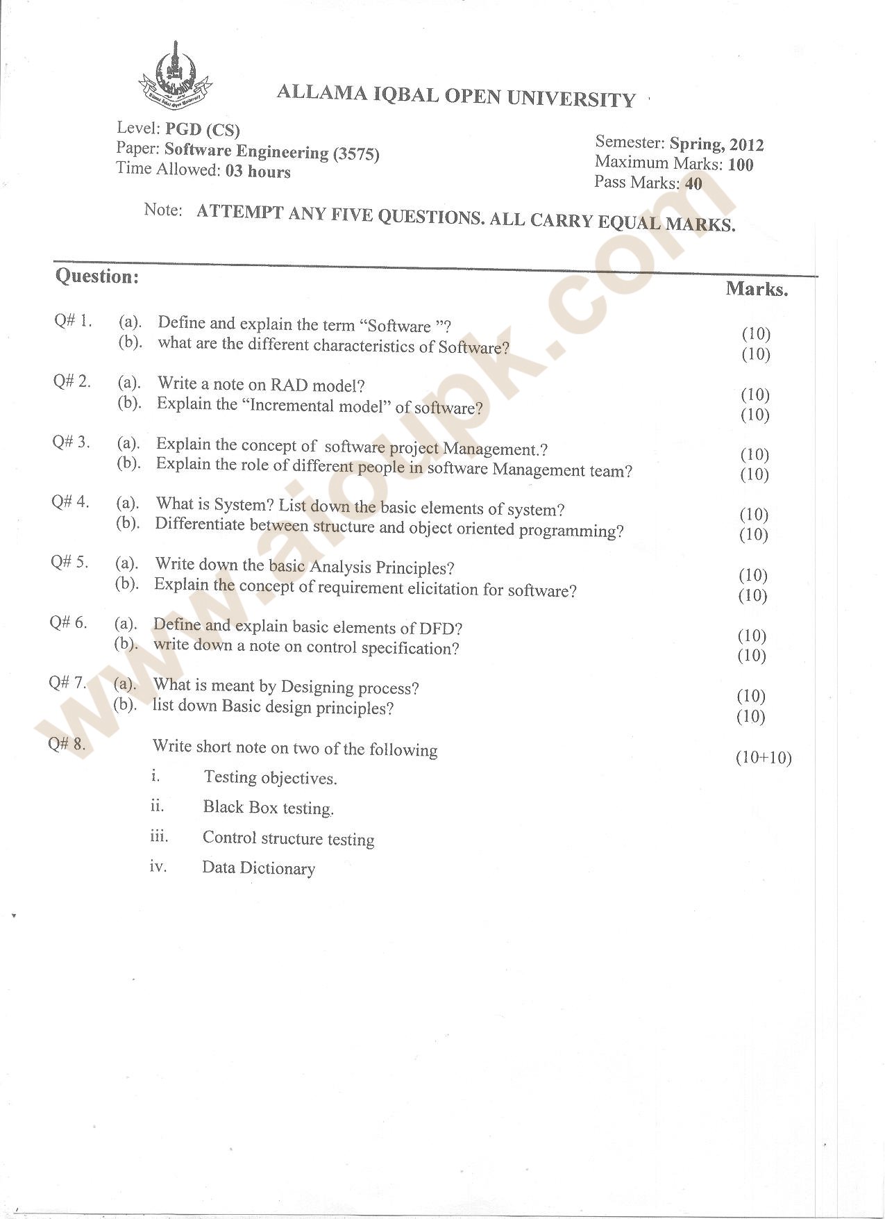 Diploma , Postgraduate programs CS Software Engineering latest pattern guess papers are available on this website. Best of Luck for your exams.